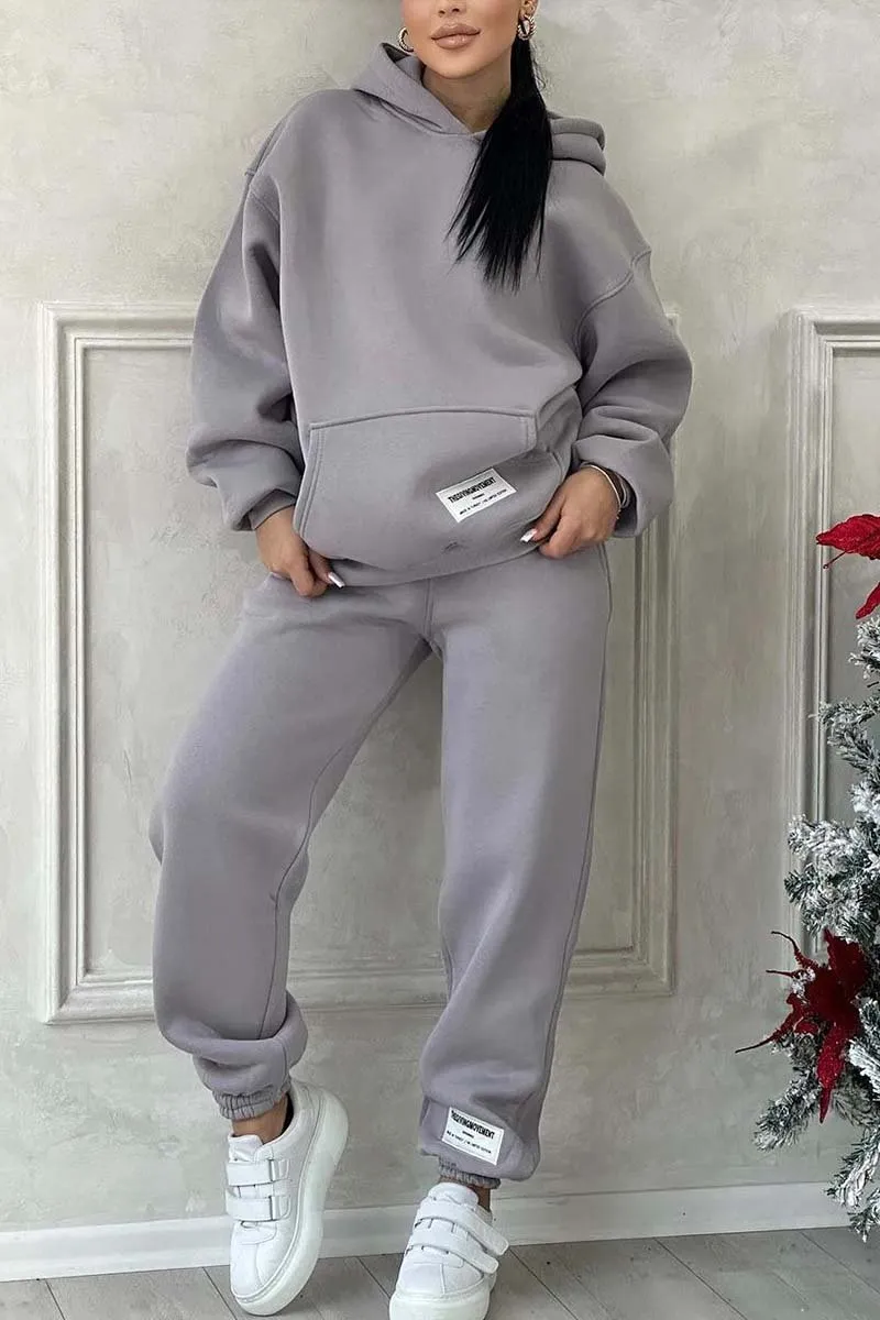 Women's casual solid color slit hem hooded sweatshirt sports suit