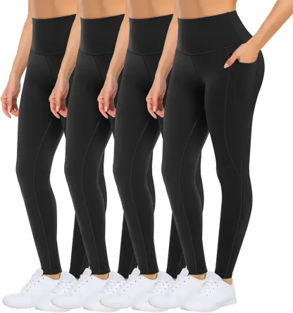 4 Pack Yoga Leggings with Pockets for Women - High Waist Tummy Control Pants for Workout