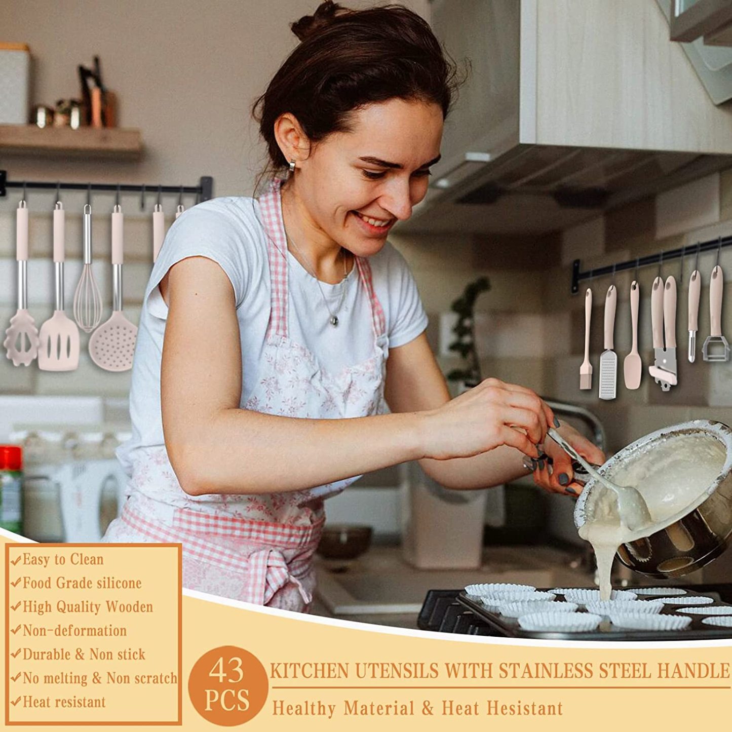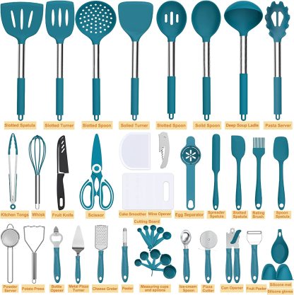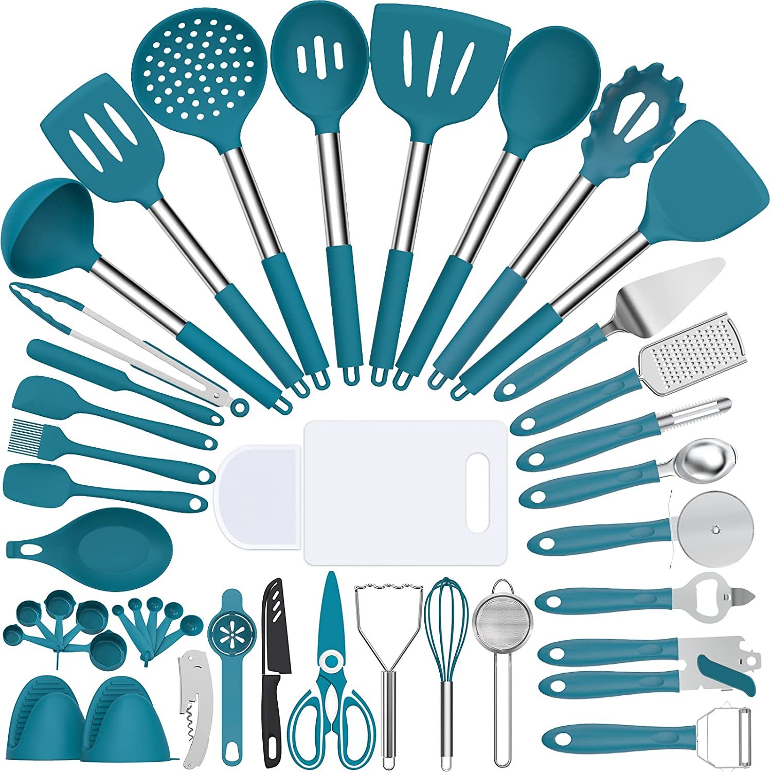 - 🎁43 PCS COOKING UTENSIL GIFT SET - 43 multifunction utensil set includes everything you need to cook that perfect dish,includes Slotted Turner,Slotted Spoon, Solid Turner, Deep soup Ladl, Pasta Server, Flexible Spatula, Spoon Spatula, Spreader Spatula, Slotted Spatula, Bating Brush, Egg Whisk, Slotted Spoon, Solid Spoon, Kitchen Tongs, Cheese Grater, Peeler, Pizza Turner and so,Your smart purchase of our all-inclusive and essential kitchen gadgets set is one you'll appreciate for many years
