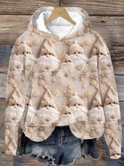 Women's Beige Winter Snow Christmas Gnomes Print Casual Hoodie