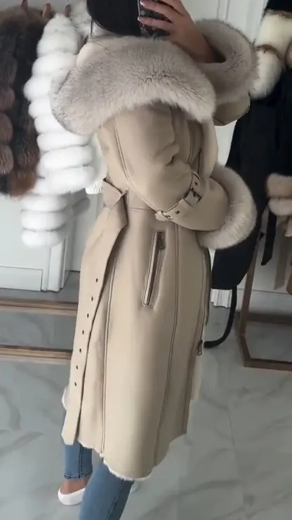 Women's Fur Lapel Long Leather Coat
