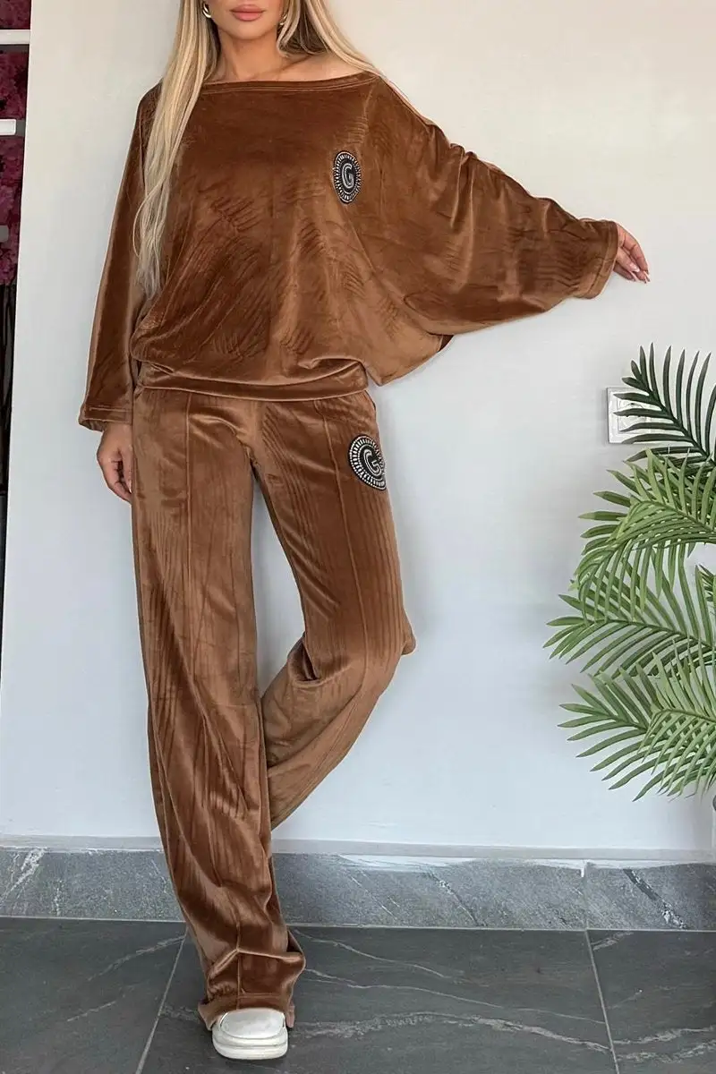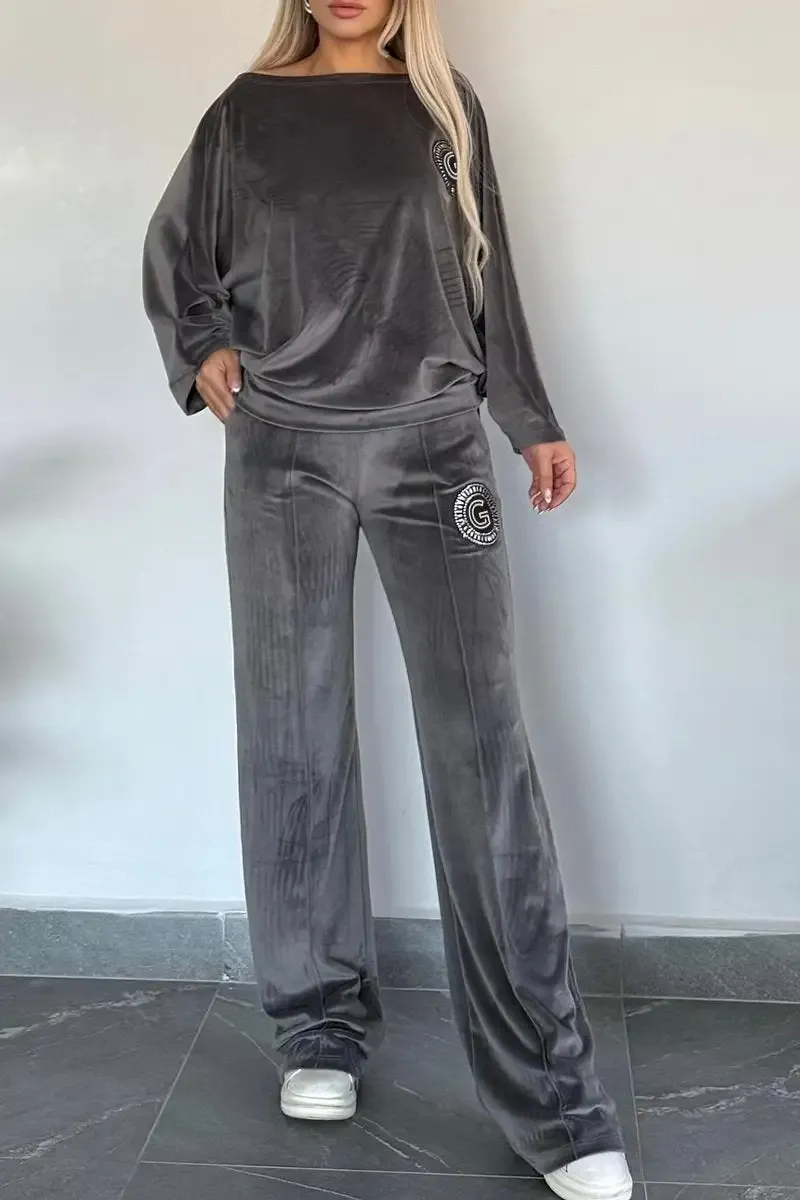 Women's One-shoulder Long-sleeved Velvet Casual Suit